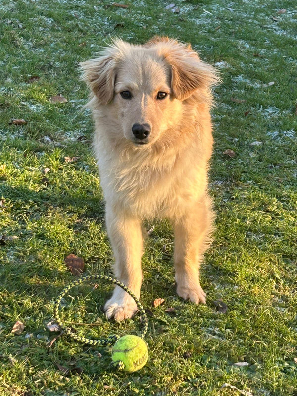 Er ist sehr verspielt, ob mit dem Ball oder anderem Hundespielzeug und er tobt sehr gerne mit anderen Hunden