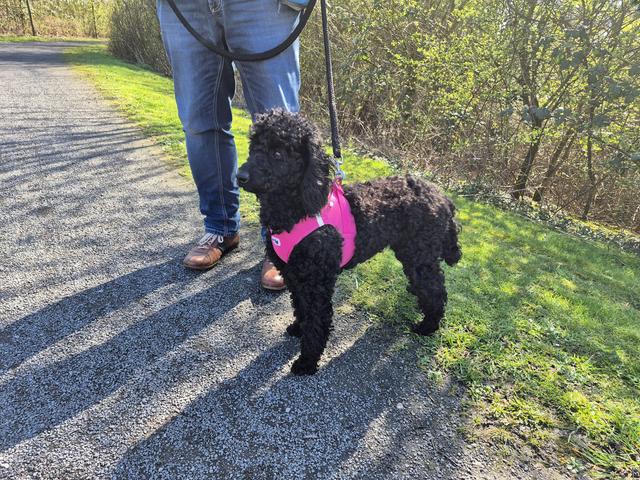 An der Leine läuft Evania schon recht gut. Andere Menschen oder Hunde scheint sie mitunter aber als nicht sympathisch einzustufen und teilt das dann auch lautstark mit. Da arbeiten wir dran …